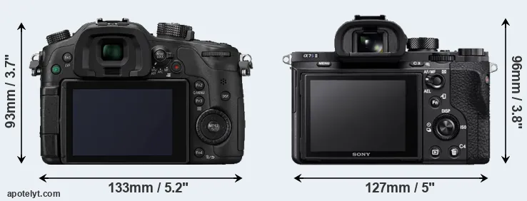 If the front view area (width x height) of the cameras is taken as an aggregate measure of their size, the Sony A7S II is somewhat smaller (1 percent) than the Panasonic GH4. However, the A7S II is markedly heavier (12 percent) than the GH4. In this context, it is worth noting that both cameras are splash and dust-proof and can, hence, be used in inclement weather conditions or harsh environments.