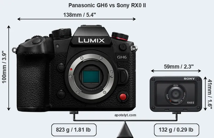 The above size and weight comparisons are to some extent incomplete and possibly misleading, as the RX0 II has a lens built in, whereas the GH6 is an interchangeable lens camera that requires a separate lens. Attaching the latter will add extra weight and bulk to the setup. You can compare the optics available for the GH6 and their specifications in the Micro Four Thirds Lens Catalog.