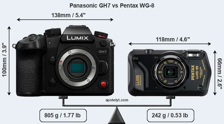 | Body Specs | Panasonic GH7 | Pentax WG-8 |