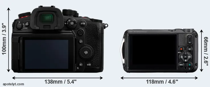 If the front view area (width x height) of the cameras is taken as an aggregate measure of their size, the Pentax WG-8 is considerably smaller (44 percent) than the Panasonic GH7. In this context, it is worth noting that both cameras are splash and dust-proof and can, hence, be used in inclement weather conditions or harsh environments. More than that, the WG-8 is water-proof up to 20m and can, thus, be used for underwater photography.