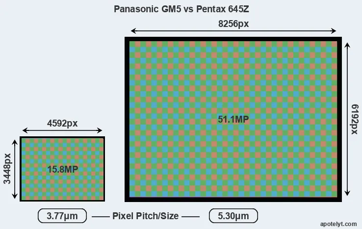 | Sensor Specs | Panasonic GM5 | Pentax 645Z |