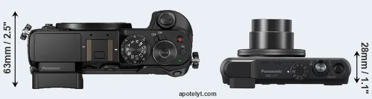 If the front view area (width x height) of the cameras is taken as an aggregate measure of their size, the Panasonic LF1 is considerably smaller (38 percent) than the Panasonic GX8. It is worth mentioning in this context that the GX8 is splash and dust resistant, while the LF1 does not feature any corresponding weather-sealing.