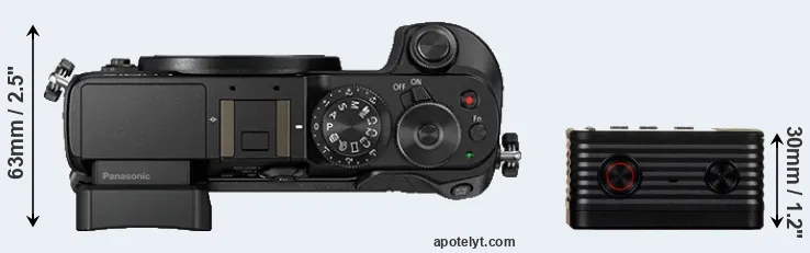 The physical size and weight of the Panasonic GX8 and the Sony RX0 are illustrated in the side-by-side display below. The two cameras are presented according to their relative size. Three consecutive views from the front, the top, and the rear side are shown. All size dimensions are rounded to the nearest millimeter.