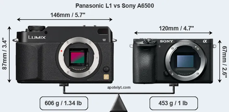 The Panasonic Lumix DMC-L1 and the Sony Alpha A6500 are two digital cameras that were revealed to the public, respectively, in February 2006 and October 2016. The L1 is a DSLR, while the A6500 is a mirrorless interchangeable lens camera. The cameras are based on a Four Thirds (L1) and an APS-C (A6500) sensor. The Panasonic has a resolution of 7.4 megapixels, whereas the Sony provides 24 MP.