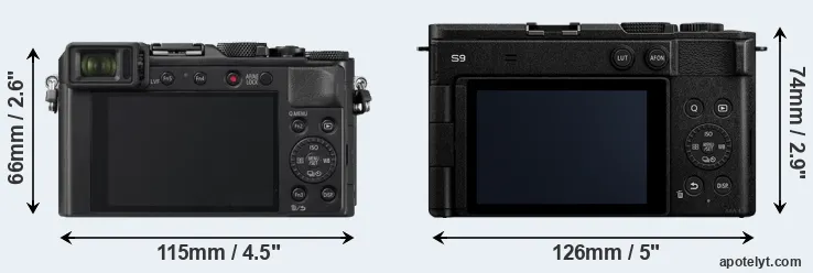 The above size and weight comparisons are to some extent incomplete and possibly misleading, as the LX100 II has a lens built in, whereas the S9 is an interchangeable lens camera that requires a separate lens. Attaching the latter will add extra weight and bulk to the setup.