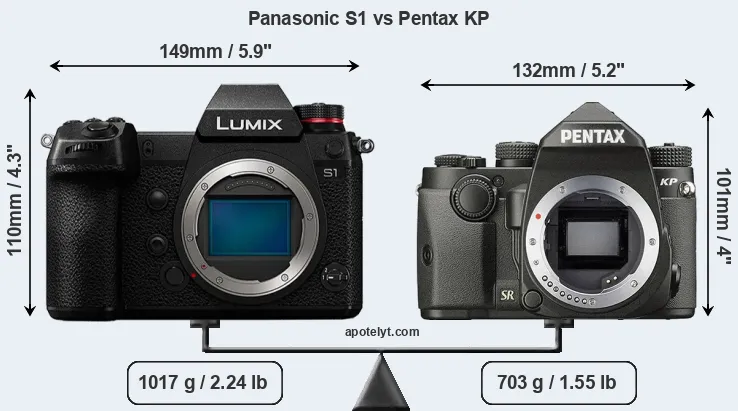The Panasonic Lumix DC-S1 and the Pentax KP are two enthusiast cameras that were revealed to the public, respectively, in February 2019 and January 2017. The S1 is a mirrorless interchangeable lens camera, while the KP is a DSLR. The cameras are based on a full frame (S1) and an APS-C (KP) sensor. The Panasonic has a resolution of 24 megapixels, whereas the Pentax provides 24.1 MP.