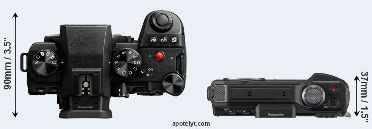 The above size and weight comparisons are to some extent incomplete and possibly misleading, as the TS7 has a lens built in, whereas the S5 II is an interchangeable lens camera that requires a separate lens. Attaching the latter will add extra weight and bulk to the setup.