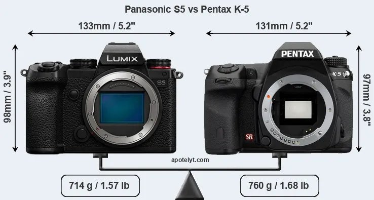 | Body Specs | Panasonic S5 | Pentax K-5 |