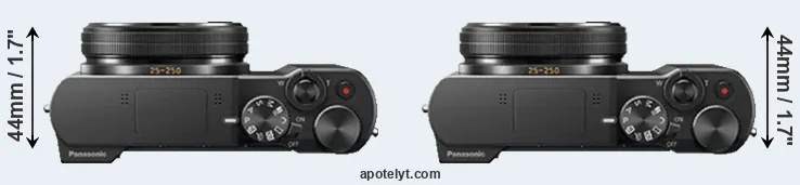 The physical size and weight of the Panasonic TZ100 and the Panasonic ZS100 are illustrated in the side-by-side display below. The two cameras are presented according to their relative size. Three consecutive views from the front, the top, and the rear side are shown. All size dimensions are rounded to the nearest millimeter.