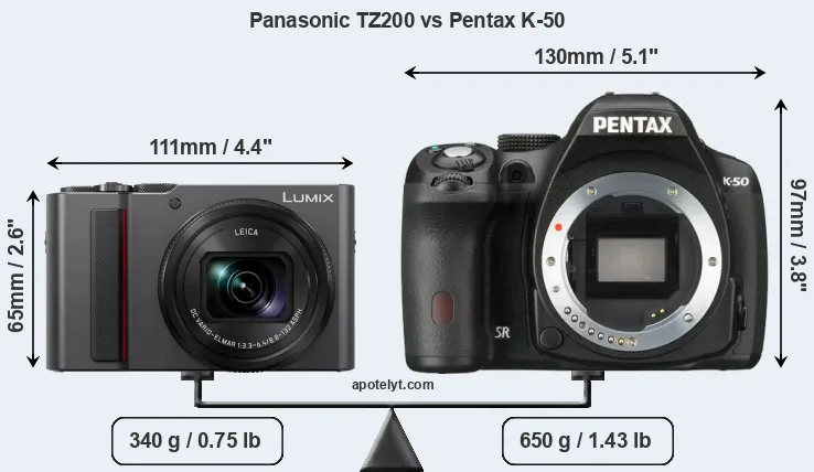 | Body Specs | Panasonic TZ200 | Pentax K-50 |