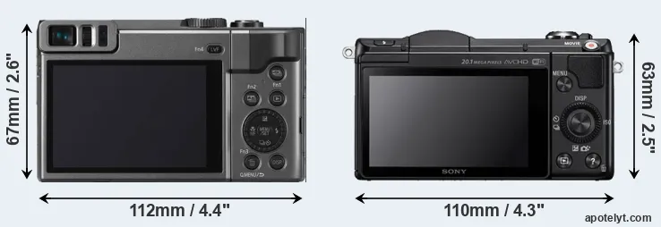 | Screen Specs | Panasonic TZ90 | Sony A5000 |