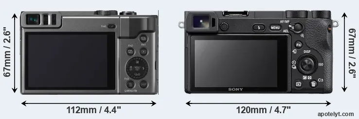 | Body Specs | Panasonic TZ90 | Sony A6500 |