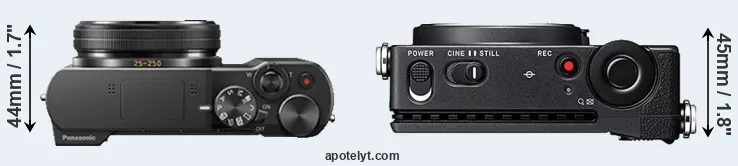 The above size and weight comparisons are to some extent incomplete and possibly misleading, as the ZS100 has a lens built in, whereas the fp is an interchangeable lens camera that requires a separate lens. Attaching the latter will add extra weight and bulk to the setup.