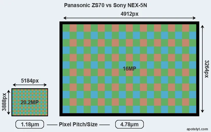 | Sensor Specs | Panasonic ZS70 | Sony NEX-5N |