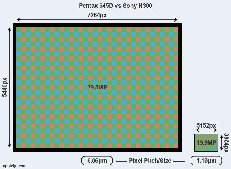 | Sensor Specs | Pentax 645D | Sony H300 |