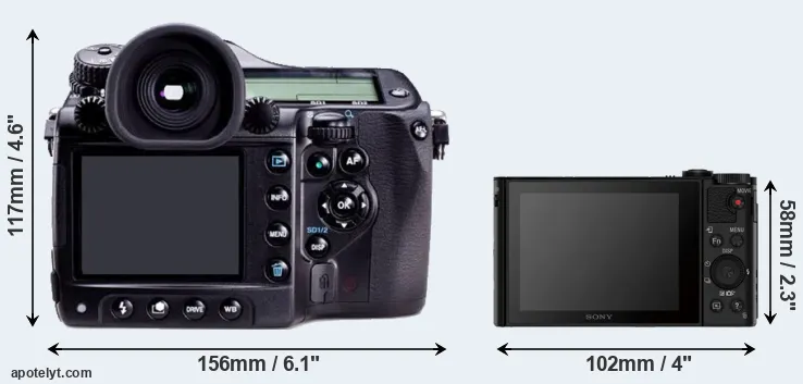 The above size and weight comparisons are to some extent incomplete and possibly misleading, as the HX80 has a lens built in, whereas the 645D is an interchangeable lens camera that requires a separate lens. Attaching the latter will add extra weight and bulk to the setup.