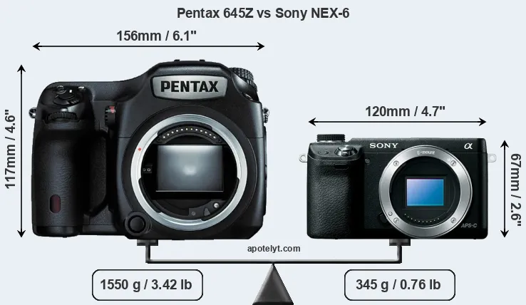 Size Pentax 645Z vs Sony NEX-6