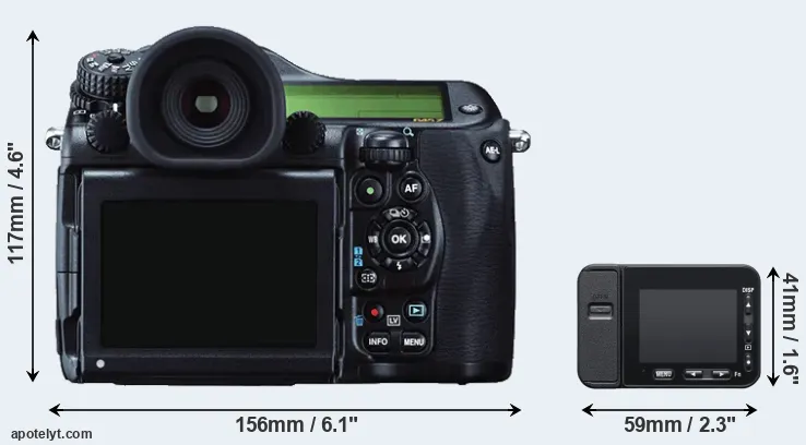 The side-by-side display below illustrates the physical size and weight of the Pentax 645Z and the Sony RX0 II. The two cameras are presented according to their relative size. Three consecutive perspectives from the front, the top, and the back are available. All width, height and depth dimensions are rounded to the nearest millimeter.