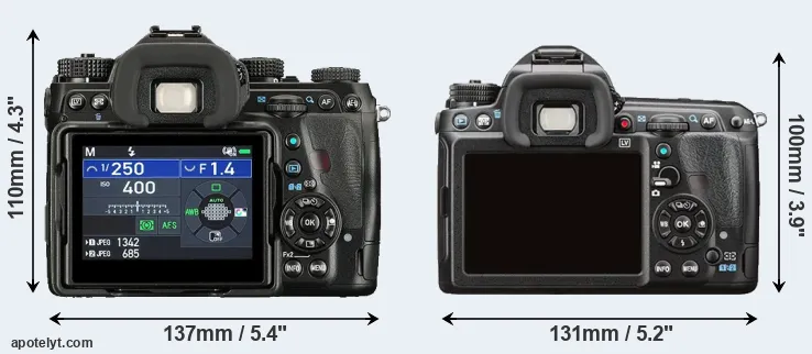 | 1. | Pentax K-1 II | 137 mm | 110 mm | 86 mm | 1010 g | 670 | Y | Feb 2018 | US$ 1 999 | amazon.com | |