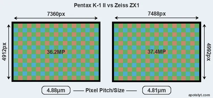 | Sensor Specs | Pentax K-1 II | Zeiss ZX1 |
