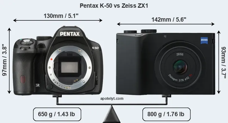 | Body Specs | Pentax K-50 | Zeiss ZX1 |