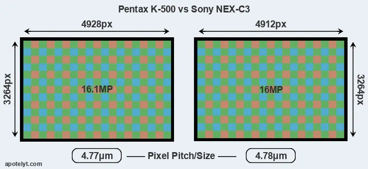 | Sensor Specs | Pentax K-500 | Sony NEX-C3 |