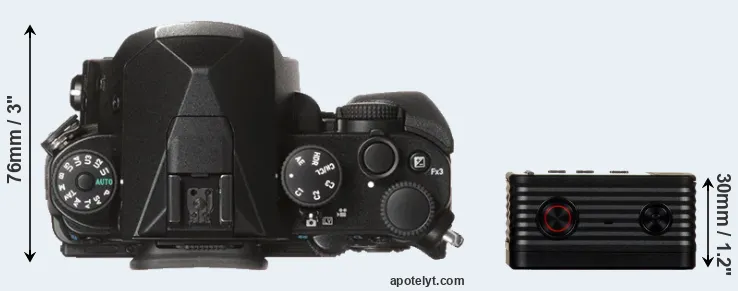 The above size and weight comparisons are to some extent incomplete and possibly misleading, as the RX0 has a lens built in, whereas the KP is an interchangeable lens camera that requires a separate lens. Attaching the latter will add extra weight and bulk to the setup.