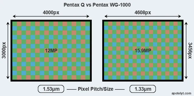 | Sensor Specs | Pentax Q | Pentax WG-1000 |