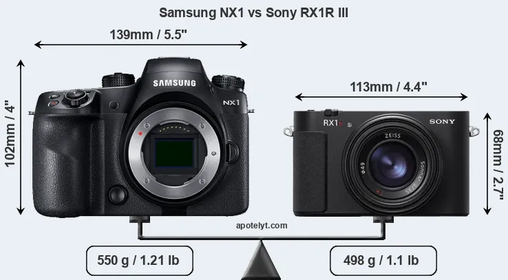 The above size and weight comparisons are to some extent incomplete and possibly misleading, as the RX1R III has a lens built in, whereas the NX1 is an interchangeable lens camera that requires a separate lens. Attaching the latter will add extra weight and bulk to the setup.