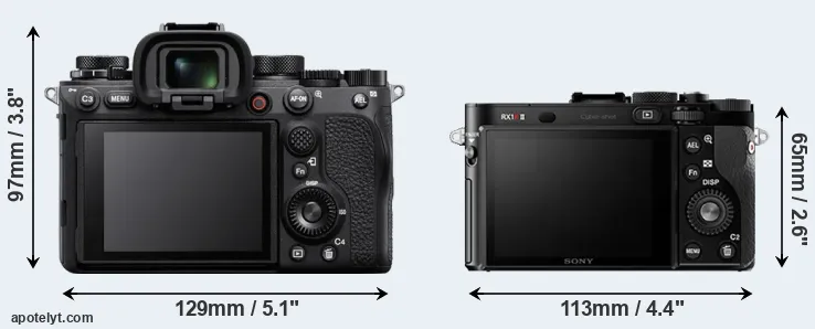 If the front view area (width x height) of the cameras is taken as an aggregate measure of their size, the Sony RX1R II is considerably smaller (41 percent) than the Sony A1. It is worth mentioning in this context that the A1 is splash and dust resistant, while the RX1R II does not feature any corresponding weather-sealing.