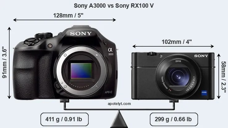 | Body Specs | Sony A3000 | Sony RX100 V |