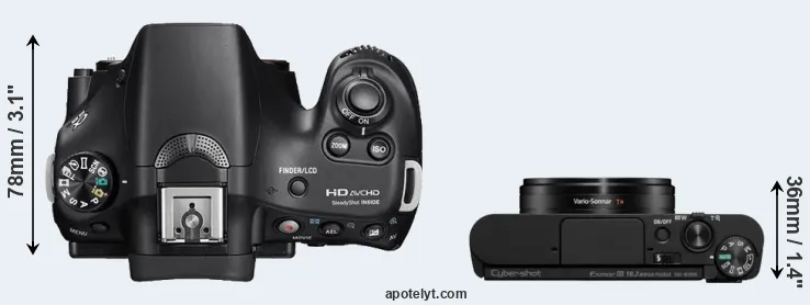 | 1. | Sony A58 | 129 mm | 95 mm | 78 mm | 492 g | 690 | n | Feb 2013 | US$ 599 | ebay.com | |