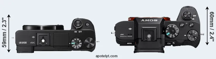 The side-by-side display below illustrates the physical size and weight of the Sony A6100 and the Sony A7S II. The two cameras are presented according to their relative size. Three consecutive perspectives from the front, the top, and the back are available. All width, height and depth dimensions are rounded to the nearest millimeter.