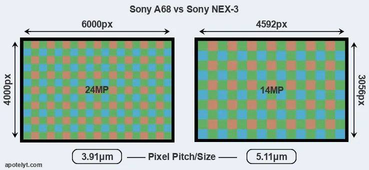 | Sensor Specs | Sony A68 | Sony NEX-3 |