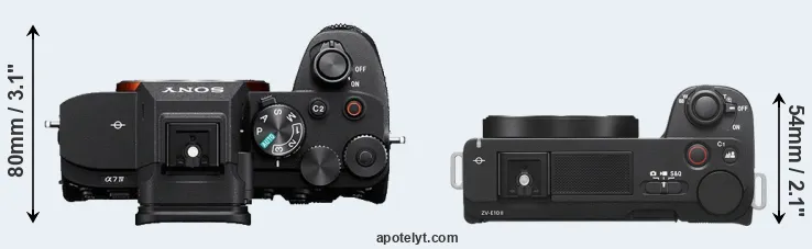 The above size and weight comparisons are to some extent incomplete since they do not consider the interchangeable lenses that both of these cameras require. A larger imaging sensor will tend to go along with bigger and heavier lenses, although exceptions exist. You can compare the optics available for the two cameras in the Sony FE Lens Catalog (A7 IV) and the Sony E-Mount Lens Catalog (ZV-E10 II). Mirrorless cameras, such as the two under consideration, have the additional advantage of having a short flange to focal plane distance, which makes it possible to mount many lenses from other systems onto the camera via adapters.