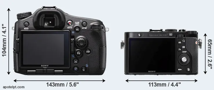The above size and weight comparisons are to some extent incomplete and possibly misleading, as the RX1R has a lens built in, whereas the A77 II is an interchangeable lens camera that requires a separate lens. Attaching the latter will add extra weight and bulk to the setup.