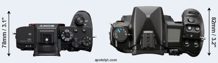 | 2. | Sony A900 | 156 mm | 117 mm | 82 mm | 895 g | 880 | Y | Sep 2008 | EUR 2 799 | ebay.com | |
