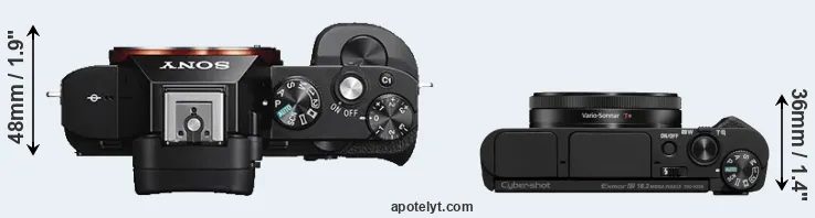 The side-by-side display below illustrates the physical size and weight of the Sony A7S and the Sony HX99. The two cameras are presented according to their relative size. Three consecutive perspectives from the front, the top, and the back are available. All width, height and depth measures are rounded to the nearest millimeter.