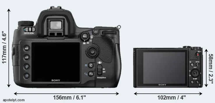 The above size and weight comparisons are to some extent incomplete and possibly misleading, as the HX95 has a lens built in, whereas the A850 is an interchangeable lens camera that requires a separate lens. Attaching the latter will add extra weight and bulk to the setup.