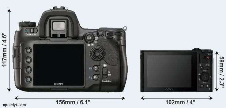 The above size and weight comparisons are to some extent incomplete and possibly misleading, as the HX90V has a lens built in, whereas the A900 is an interchangeable lens camera that requires a separate lens. Attaching the latter will add extra weight and bulk to the setup.