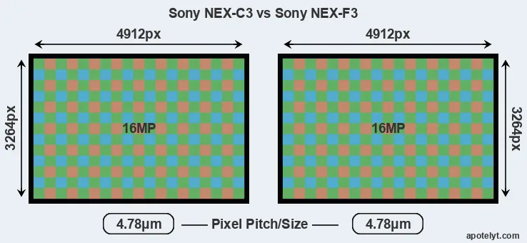 | Sensor Specs | Sony NEX-C3 | Sony NEX-F3 |