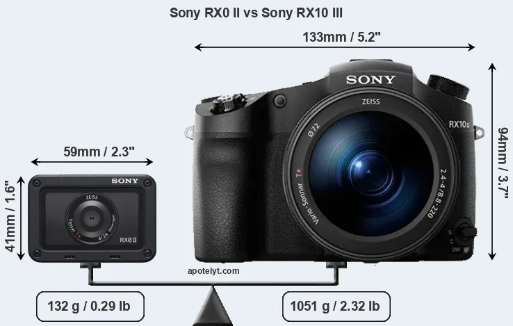 Going beyond this snapshot of core features and characteristics, what are the differences between the Sony Cyber-shot DSC-RX0II and the Sony Cyber-shot DSC-RX10 III? Which one should you buy? Read on to find out how these two cameras compare with respect to their body size, their imaging sensors, their shooting features, their input-output connections, and their reception by expert reviewers.