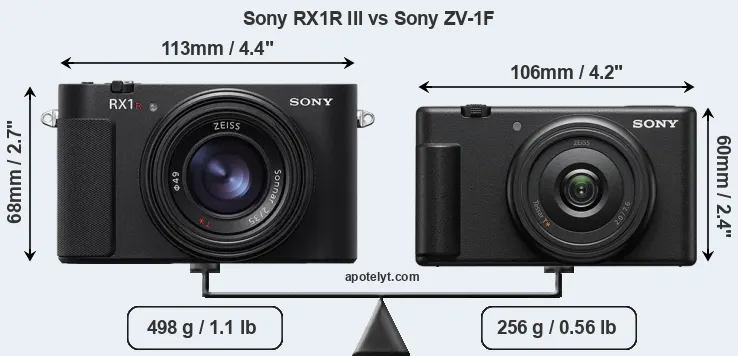 The Sony Cyber-shot DSC-RX1R III and the Sony ZV-1F are two digital cameras that were officially introduced, respectively, in July 2025 and October 2022. Both the RX1R III and the ZV-1F are fixed lens compact cameras that are based on a full frame (RX1R III) and an one-inch (ZV-1F) sensor. The RX1R III has a resolution of 60.2 megapixels, whereas the ZV-1F provides 20 MP.