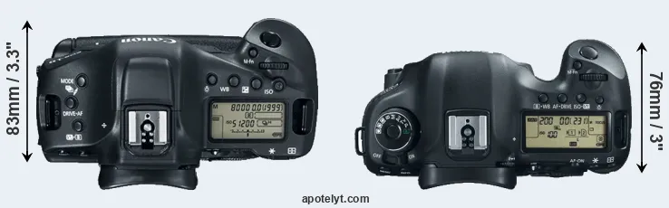 | 5. | Canon 1D X | 158 mm | 168 mm | 83 mm | 1551 g | 1120 | Y | Okt 2011 | US$ 6 799 | ebay.com | |
