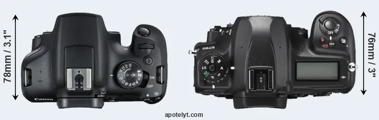 | 4. | Canon 77D | 131 mm | 100 mm | 76 mm | 540 g | 600 | n | Feb 2017 | US$ 899 | ebay.com | |