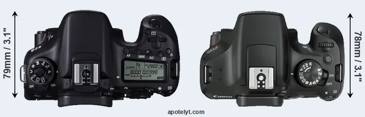 | 9. | Canon 80D | 139 mm | 105 mm | 79 mm | 730 g | 960 | Y | Feb 2016 | US$ 1 199 | ebay.com | |