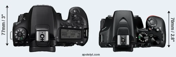 | 1. | Canon 90D | 141 mm | 105 mm | 77 mm | 701 g | 1300 | Y | Aug 2019 | US$ 1 199 | amazon.com | |