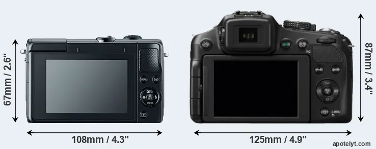 Die physische Größe und das Gewicht der Canon M100 und der Panasonic FZ200 werden in der nachfolgenden Graphik illustriert. Die beiden Kameras werden entsprechend ihrer relativen Größe dargestellt. Alle Größenangaben sind auf den nächsten Millimeter gerundet.
