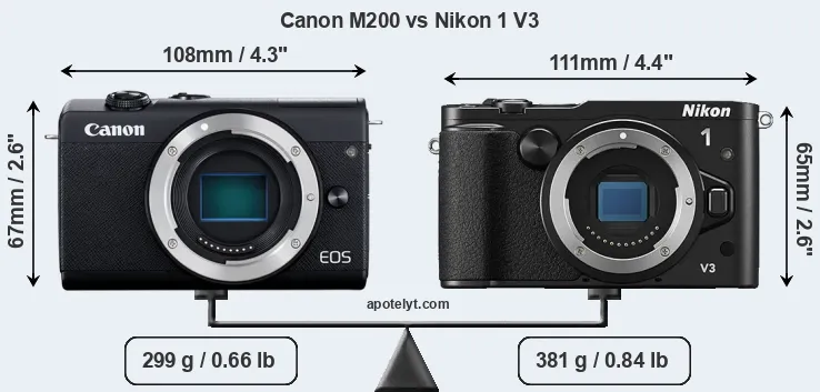 Size Canon M200 vs Nikon 1 V3