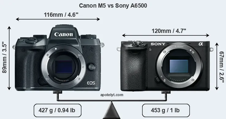 Die Canon EOS M5 und die Sony Alpha A6500 sind zwei digitale Kameras, die im September 2016 beziehungsweise im Oktober 2016 vorgestellt wurden. Bei beiden Modellen handelt es sich um spiegellose Wechselobjektivkameras, die mit einem APS-C Sensor ausgerüstet sind. Beide Kameras bieten eine Auflösung von 24,0 Megapixel.
